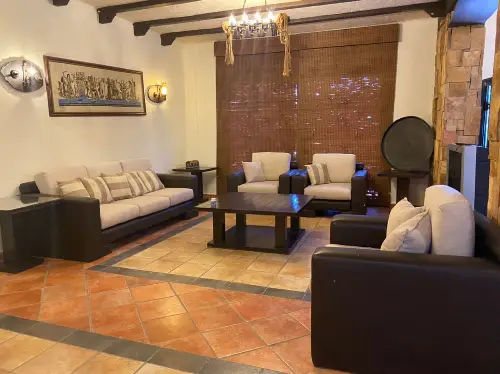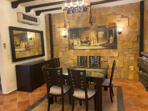 طابق الثاني: 4 غرف نوم -غرفة ماستر مع حمام و غرفة تبديل ملابس- ٣غرف كل غرفة تحتوي على تختين- حمام مشترك لباقي -الغرف تراس كبير