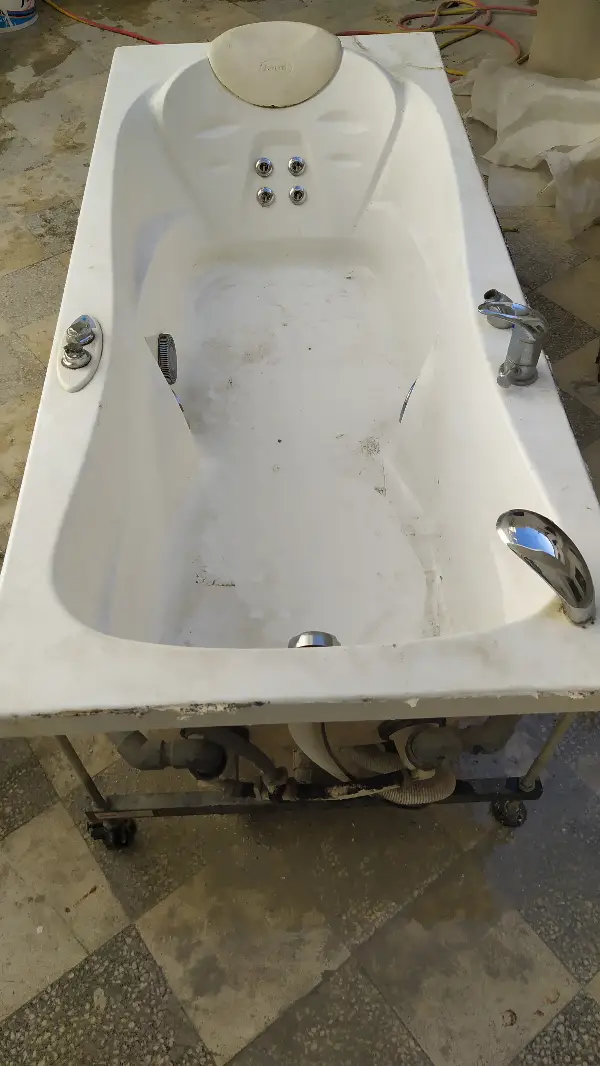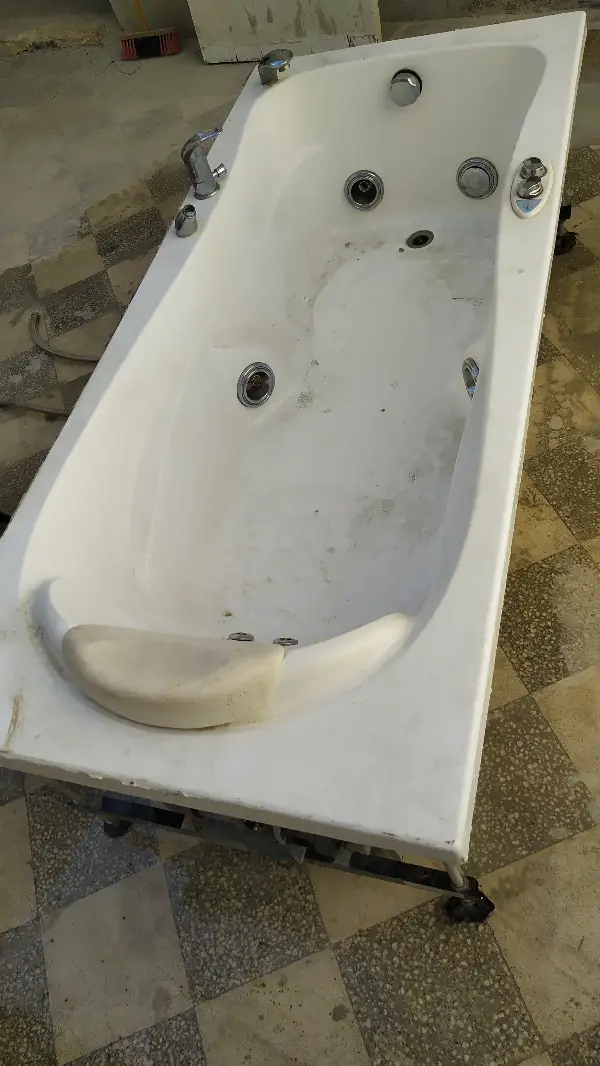 للبيع طقم حمام إيطالي مستعمل مؤلف من كرسي تواليت افرنجي عدد 2 + شطاف + مغسلة عدد 1+ جاكوزي إيطالي ماركة المنتجات "Jacuzzi" الايطالية