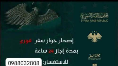 جواز سفر فوري تسليم الحجز خلال ساعة واحدة فقط.