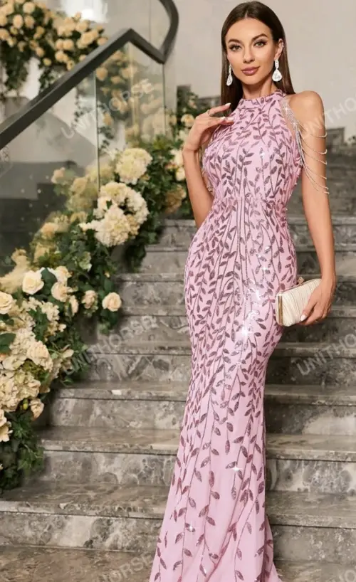 فستان سهرة تريند .. اللون زهري .. القياس L / Xl