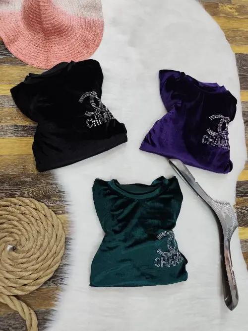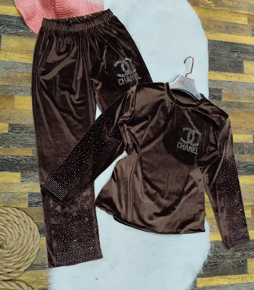 بيجامة التريند طبعة شانيل كبس ستراس مكفول ما بفك قماش مخمل وجه واحد الألوان بالصور😍 فري لل 44 توصيل دمشق وشحن محافظات هرم وقدموس