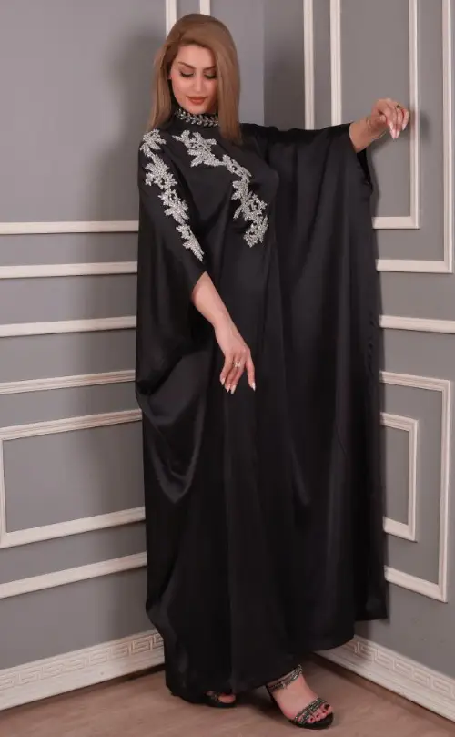 فستان ساتان جيسكا فراشه زريكون مع حجر بلور اجنبي ستندر/ ٤٠ لل ٥٠ اسود/ زيتي/ خمري / توصيل وشحن الاحد حلب