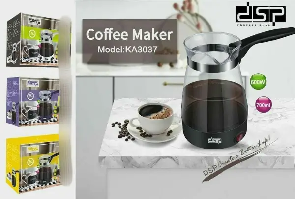 ركوة القهوة الكهربائية ماركة dsp صيني نخب أول بامتياز فرنسي لصناعة القهوة بدون غاز وتكاليف مصنوعة من زجاج مقاوم للحرارة القاعدة الداخلية من الستانلس ستيل القاعدة الخارجية متصلة بجسم الركوة الاستطاعة 600 W 💪 السعة 700 ml متوفرة بـ 3 ألوان { أبيض - أسود - موف }