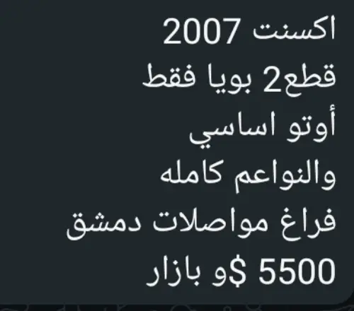 أكسنت ...خالية برا جوا ....محرك ودوزان ذهب ...جاهزية عالية جدا ....نظافة توب ......لحق حالك واغتنم فرصتك ......عمر ...25/9.....للراغب فقط .....نعتذر من الوسطاء ....عمولة من الشاري .......شكرا لتفهمكم .....