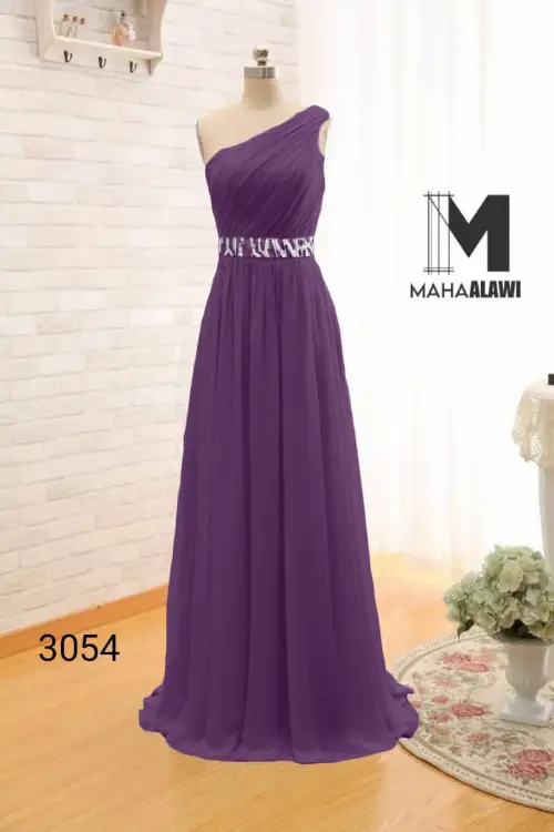 موديل 3054 فستان شيفون مبطن هاي كوالتي وعالخصر زنار مكلف بحجار ملونة ثابته المقاسات *38....40....42....44*