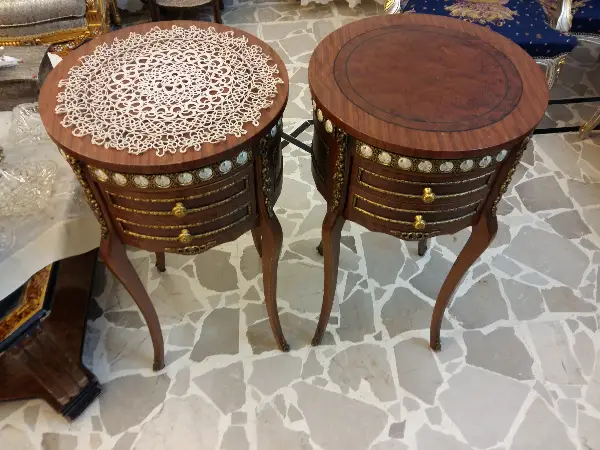 غرفة ضيوف لون كحلي مع طاولات مرمر