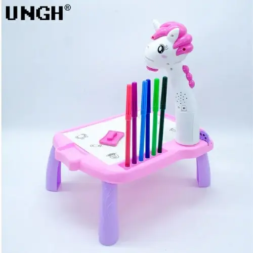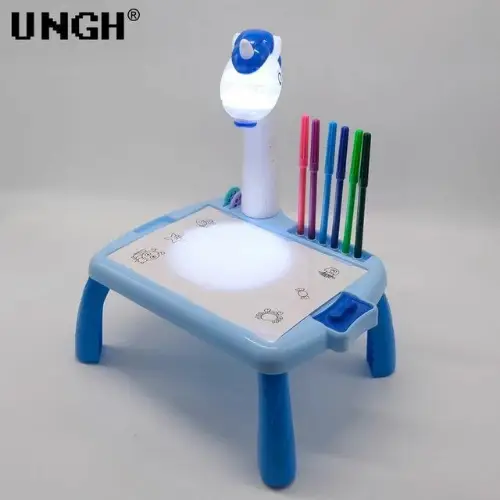 طاولة بروجكتر رسم للأطفال 😍 لتنمية مهارات الرسم لدى الطفل ❤️ مزود بجهاز إسقاط ضوء دائري 💫 مع 3 أقراص تحتوي 24 شكل مختلف 🥰 و 12 قلم تلوين مخصص للوح 🖍 و ممسحة صغيرة للتنظيف 🤗 يعمل باستخدام بطاريتين AA 🔋 الفئة العمرية المناسبة : +3 سنوات الأبعاد { الطول 20 - العرض 15.5 - الارتفاع 30 } سم الألوان : أزرق 💙 - زهري 🩷 توصيل ضمن الشام وشحن للمحافظات 🚌