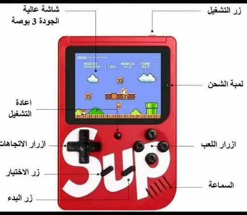 جهاز الألعاب الأول Sup Game Box ❤️ الحل لتبعد ولادك عن إدمان الموبايل 🤗 يحتوي 400 لعبة منها لعبة { ماريو } 😍 شاشة ملونة LCD مقاس 3 انش 👌 بطارية 800MA تدوم حوالي 5 ساعات 🔋 إمكانية الربط بشاشة واللعب على التفاز 🖥 الألوان { أحمر - أبيض - أصفر - أسود - أزرق } توصيل ضمن الشام وشحن للمحافظات 🚌