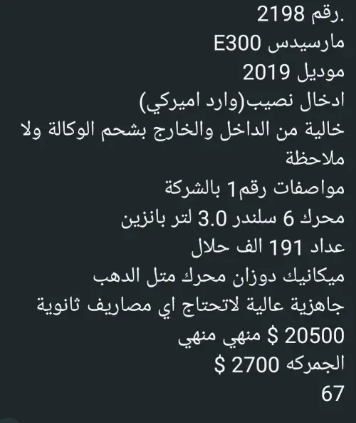 الوحش الالماني ...مرسيدس ...2019...خالي برا جوا ... محرك ودوزان ذهب .....جاهزية غدعالية جدا .....نظافة خارقة ...بالسعر الخرااافي ....لحق حالك واغتنم الفرصة .....مح.س....28/9....للراغب فقط ...نعتذر من الوسطاء والمكاتب .....عمولة من الشاري ......شكراا للجمييع.........للجاديييين فقط ...