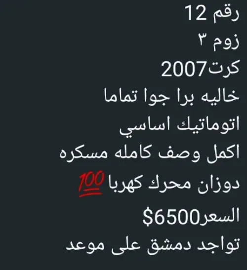 زوووم3 ...3.......خالية برا جوا ...محرك ودوزان ذهب ...جاهزية ممتازة ....لحق حالك واغتنم الفرص ...مح.س.....28/9....البيع للراغب فقط ......نعتذر من الوسطاء والمكاتب ...عمولة منالشاري ...شكرا لتفهمكم ....للجادييين فقط .......