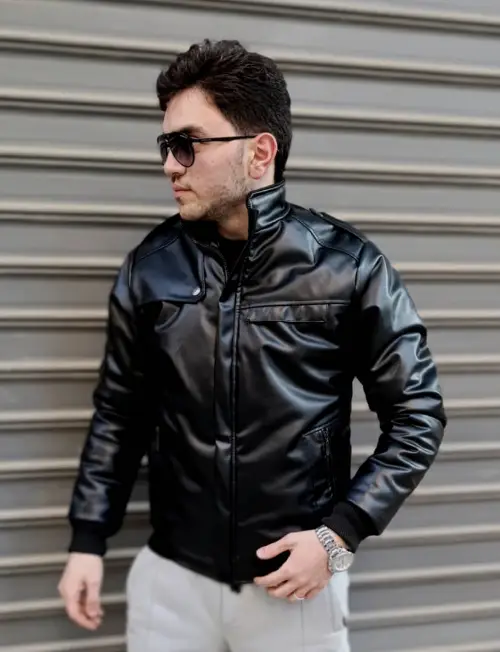 جاكيت جلد شبابي موديل نفخ مبطن فرو محشي ديكرون تقيل M.l.xl.xxl