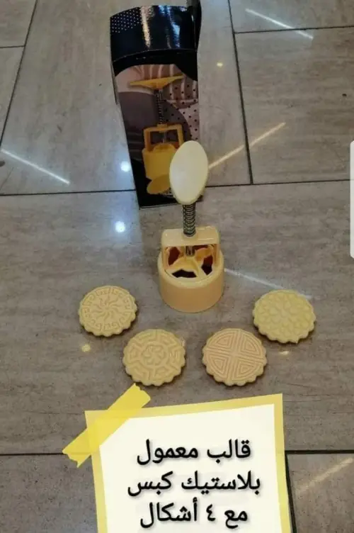 مكبس لصنع المعمول ❤️ مصنوع من البلاستيك المتين 👌 4 قوالب بأشكال متميزة 😍 متوفر باللون { السكري } 🌸 توصيل ضمن الشام وشحن للمحافظات 🚌