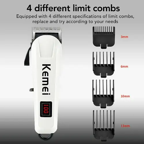 ماكينة حلاقة Kemei KM-809A ❤️ التي تعمل على الشحن والكهرباء 😍 مع شاشة ديجيتال لعرض نسبة الشحن 💯 احترافية للاستخدام الشخصي أو للحلاقين 😎 شفرات من الفولاذ المقاوم للصدأ 💪 الرأس قابل للفك مع إمكانية غسله بالماء 💦 مزودة ب 4 أمشاط للاستخدامات المختلفة 👌 مقاسات { 3 - 6 - 10 - 13 } mm 🪒 مناسبة للشعر و اللحية و الشارب 😉 بطارية 1000mAh قابلة للشحن 🔋 وقت الشحن : 4 ساعات وقت الاستخدام : 100 دقيقة مع إمكانية الاستخدام على الكهرباء مباشرة 🔌 توصيل ضمن الشام وشحن المحافظات 🚌