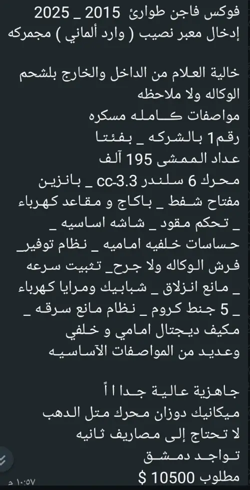ولكس فاجن طوارق .....خالية برا جوا ...محرك ودوزان ذهب .....جاهزية نااار .....لحق حالك واغتنم الفرصة ......عمر ....4/10....للراغب فقط ....نعتذر من الوسطاء والمكاتب ...عمولة من الشاري .....شكراااا للجمييع ......للجادييين فقط ...