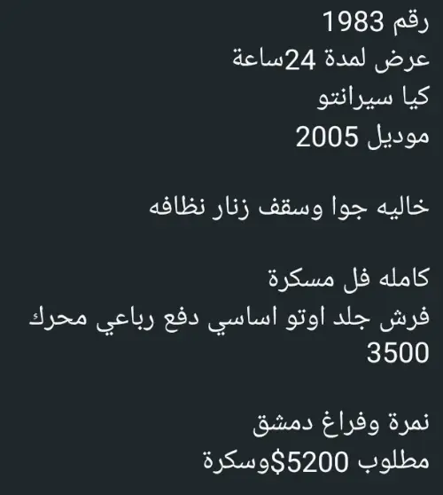 سورينتو ...2005...خالي ب ا جوا .....محرك ودوزان ذهب ...جاهزية ممتازة ...لحق حالك واغتنم الفرصة ...لفترة جدااا محدودة .....مح.س......4/10...لفترة جدااا محدودة .......للجادييين فقط ...شكرا لتفهمكم ....