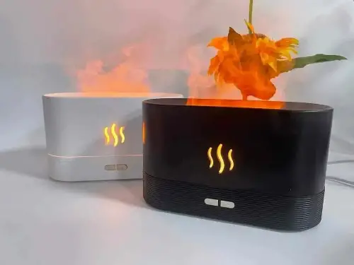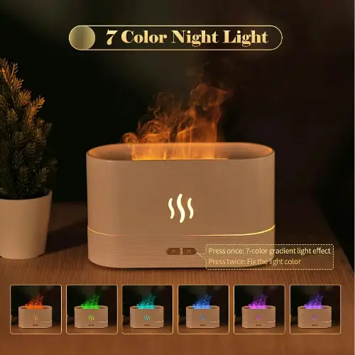 مبخرة اللهب 😍🔥 مبخرة لتلطيف وتعطير جو الغرفة 🌸 وصمدية مميزة للاقتناء والزينة 🥰 ما عليكي إلا تعبئة الخزان بالماء 💧 ومزجه بقطرات من العطر المفضل 👌 تعطي إضاءة RGB متغيرة 7 ألوان 🌈 تعمل بالوصل المباشر على الكهرباء 🔌 الأبعاد { الطول 17 - العرض 7.5 - العمق 10 } سم 🎗 متوفرة بلونين { أبيض - أسود } ❤️ توصيل ضمن الشام وشحن للمحافظات 🚌