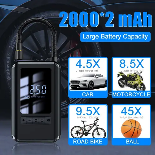 المنفاخ يلي لح يخدمك وين ما كنت ❤️ لأنو ببساطة بيشتغل على الشحن ✅ منفاخ إلكتروني متعدد الاستخدامات 😍 صغير الحجم يمكن حمله لأي مكان 🤗 بطارية داخلية 2000mAh*2 قابلة للشحن 🔋 مزود بضوء ليد { أبيض / أحمر } للطوارئ❗️ يمكن التحكم بـ 4 أنماط أساسية للنفخ 😍 سيارة🚗 دراجة🚲 دراجة نارية 🏍 كرة 🏀 مع شاشة ديجيتال لعرض مقدار الهواء 💨 مزود بملحقات تناسب صمامات النفخ المختلفة 👌 ⭐️ الاستطاعة : 60 واط ⭐️ ضغط الهواء : 130 PSI ⭐️ قدرة النفخ : 25 ليتر/دقيقة توصيل ضمن الشام وشحن للمحافظات 🚌