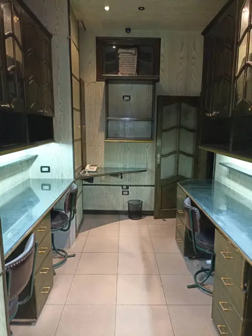لليجار شقة تجارية بالبرامكة مساحة 120م طابق ارضي 3 مكاتب وصالون كبير كسوة سوبر ديلوكس