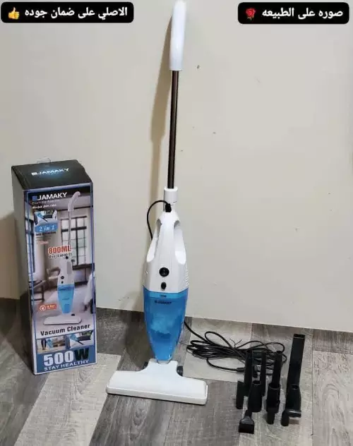 مكنسة شفط عمودية JAMAKY 🧹 سعة خزان 800 مللي لتنظيف أسرع 📦 قوة 500 وات لشفط قوي وفعال ⚡ تصميم 2 في 1 لتنظيف الأرضيات والمقاعد 🛋️ طول سلك 4.6 متر للحركة بحرية 📏 مناسبة لكل أنواع الأرضيات والأسطح 🏠 تقليل التعب وتسهيل التنظيف اليومي 💪 منتج عالي الجودة ومثالي للمنزل 🏡 توصيل ضمن الشام وشحن للمحافظات 🚚