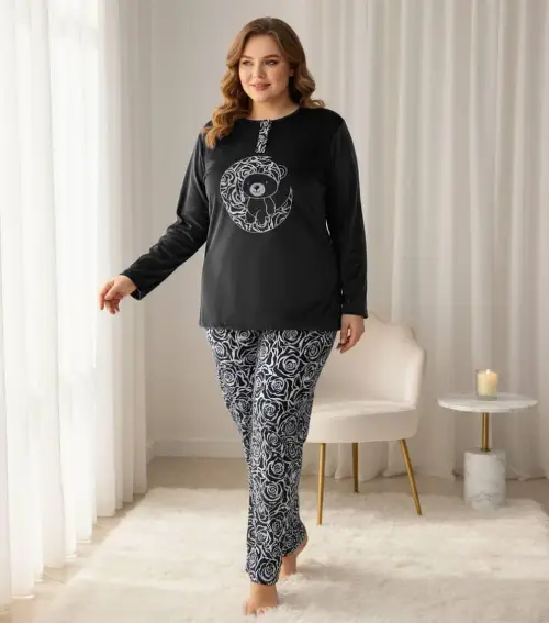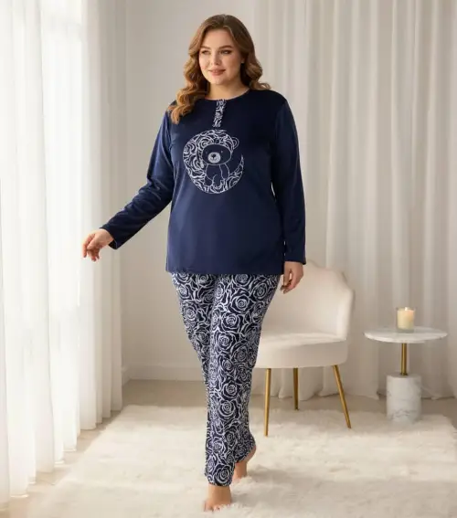 #بجامة نسواني قطعتين كنزة وبنطلون قماش مخمل وجهين تقيل ومكفووول 🔥نقشة الدبدوب بنطال معرق وكنزة تطريز ✨ مقاسات خاصة : 2x 3x 4x بتلبس 44 46 48 50 3 الوان بالصور اسود 🖤 موف 💜 كحلي 💙 🔥🔥 *السعر 250000