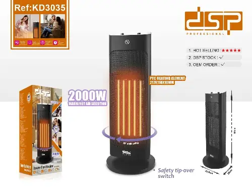 شوفاج برج ماركة dsp الفخامة 😍❤️ موديل KD3035 بامتياز فرنسي 🇫🇷 استطاعة عالية 2000 واط 😎 مخرج هواء شبك معدني 💪 تدفئة PTC - حماية من الحرارة الزائدة 😇 مع نظام إيقاف تلقائي عند السقوط 😌✋ زاوية دوران واسعة °80 لتوزيع الهواء 🔄 يمكن استخدامه على النمط البارد للتهوية 🍃 أو على النمط الساخن للتدفئة 🔥 مع إمكانية التحكم بدرجة الحرارة ✅ الأبعاد { الطول 22.6 - العرض 20 - الارتفاع 52 } سم 🎗 توصيل ضمن الشام وشحن للمحافظات 🚌
