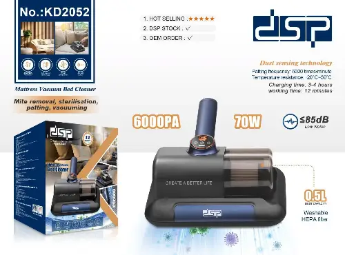 مكنسة الشحن اللاسلكية ماركة dsp 😍❤️ موديل KD2052 بامتياز فرنسي 🇫🇷 المكنسة العملية بدون الحاجة للكهرباء 🤗 لإزالة العث والتعقيم والتنظيف العميق 🌸 بالإضافة إلى وظيفة ترتبيت جزيئات الغبار ✨ باهتزازات عالية التردد 6000 مرة/دقيقة 🌪 قوة الشفط عالية 6 كيلو باسكال 😎 باستطاعة 70 واط { فعليّة } 💪 خزان الغبار جانبي بسعة 0.5 ليتر 👌 مع فلتر قابل للغسل وإعادة الاستخدام 🔄 ضوضاء منخفضة ≤ 85 ديسيبل 🤫 3 بطاريات ليثيوم بسعة 4500 ميلي أمبير 🔋 ⭐️ وقت الشحن : 3 - 4 ساعات ⭐️ وقت الاستخدام : 12 دقيقة { متواصلة } توصيل ضمن الشام وشحن للمحافظات 🚌