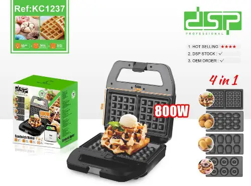 صانعة الحلويات 4 بـ 1 ماركة dsp 😍❤️ موديل KC1237 بامتياز فرنسي 🇫🇷 الاستطاعة 800 واط { فعليّة } 💪 هيكل مزيج من البلاستيك والستانلس 😎 4 قوالب لصنع الحلويات المختلفة 😋 ألمنيوم مطلي يمنع الحرق والالتصاق 🤗 1⃣ قالب لصنع الغوفر - يتسع لـ 2 قطعة 2⃣ قالب لصنع المكسرات - يتسع لـ 12 قطعة 3⃣ قالب لصنع الأصداف - يتسع لـ 8 قطع 4⃣ قالب لصنع الدونات - يتسع لـ 6 قطع أبعاد القوالب { الطول 21.6 - العرض 12 } سم 🎗 توصيل ضمن الشام وشحن للمحافظات 🚌