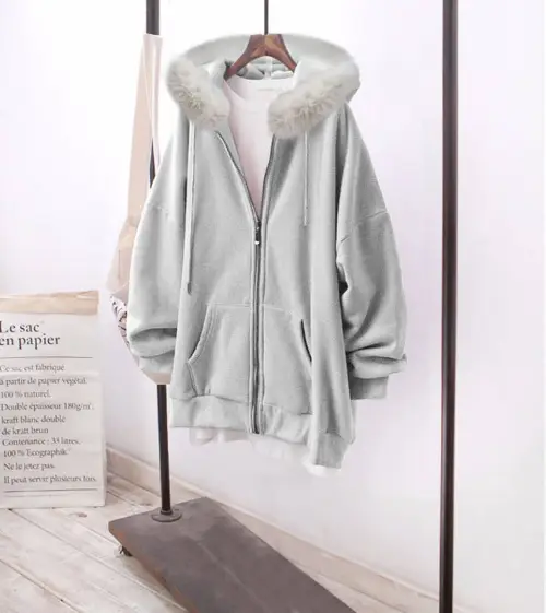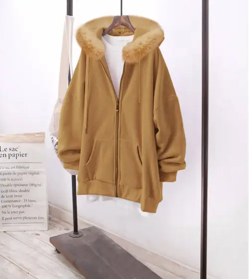 جاكيت نسواني هودي طول 70 سانت YM طاقيه مكلفه فرو قماش فليس صيني ميكرو السعر 175000 M.l.xl.xxl