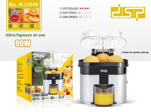عصارة حمضيات ماركة dsp الفخامة ❤️ موديل KJ1049 بامتياز فرنسي 🇫🇷 رأسين لعصر كمية أكبر بوقت أقل 😉 مع قطعة خاصة للتقطيع بتساوٍ كالسكين 🔪 استطاعة المحرك 90 واط { فعليّة } 💪 مع إبريق للتعبئة سعة 0.5 ليتر 👌 ما عليكي إلا تحطي الفاكهة عـ الجسم المدور 🤗 بمجرد الضغط تدور العصارة تلقائياً 🌪 ثواني وبيكون عصيرك جاهز 🍹 توصيل ضمن الشام وشحن للمحافظات 🚌