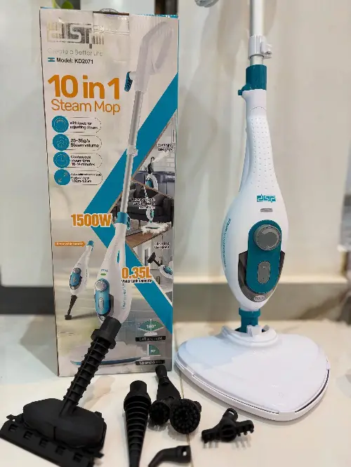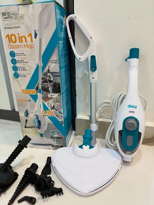 ممسحة بخار 10 بـ 1 ماركة dsp الفخامة ❤️ موديل KD2071 بامتياز فرنسي 🇫🇷 لتنظيف الأرضيات٬ والمطبخ٬ والحمام٬ والنوافذ...✨ كما يمكن استخدامها لكي وتعقيم الملابس 👕 الاستطاعة خارقة 1500 واط { فعليّة } 💪 ما عليك إلا تعبئة الخزان بـ 350 مل من الماء 💧 وإضافة معقم أو معطر { حسب الرغبة } 🌸 يقوم الجهاز بالتسخين الفوري وإعطاء البخار 🔥 قادر على إعطاء البخار لمدة 10 - 14 دقيقة ⏰ حجم البخار : 25 - 35 غرام / دقيقة 💨 ارتفاع الممسحة : 1.02 - 1.25 متر ↕️ عمود تلسكوبي : 58 - 75.5 سم { قابل للتعديل } ✅ تدور الممسحة المثلثة بزاوية 180 درجة 🔄 قادرة على تنظيف الزوايا وأصعب الأماكن 😎 طول سلك الطاقة : 4.75 متر 🔌 مزود بملحقات متعددة الاستخدامات 😍 1⃣ فوهة طويلة 2⃣ فرشاة مستديرة صغيرة 3⃣ فرشاة مستديرة كبيرة 4⃣ فرشاة الشقوق 5⃣ مكشطة 6⃣ فوهة بزاوية 7⃣ فوهة عريضة متتعدة الاستخدامات 8⃣ قطعة قماش مرنة متعددة الاستخدامات يمكن استخدامها لتنظيف الزجاج وكي الملابس ✅ 9⃣ غيار ممسحة مثلث × 2 🔟 كوب قياس 250 مل مع قمع لسهولة التعبئة توصيل ضمن الشام وشحن للمحافظات 🚌