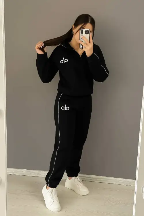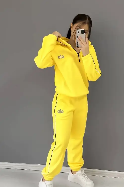 جديد الجمال والتقل والتريند بقطعة وحده بيجاما سبور موديل هودي سحاب بنطال بوي فريند القماش قطن فليس مبطن مكفول الالوان اسود اصفر بني مقاسات M-L-xl شحن مباشر السسسعر ١٨٥ الف
