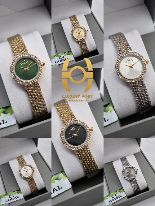 CORAL QUARTZ HIGH-QUALITY FOR LADY الحركة كوارتز كامل الساعة ستانلس ستيل لون ثابت زيركون على إطار الساعة Size 25mm جودة عالية
