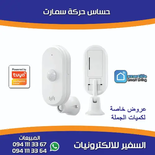 حساس حركه سمارت يعمل مع تطبيقات تويا وسمارت لايف يقوم بارسال الاشعارات الى الموبايل في حال حدوث حركه في منطقه التركيب كما يمكن استخدامه لاتمته عمل اجهزه اخرى مرتبطه بمنظومه تويا متوفر جمله ومفرق امكانيه الشحن الى جميع المحافظات السوريه للتواصل عبر وتساب 0932843338