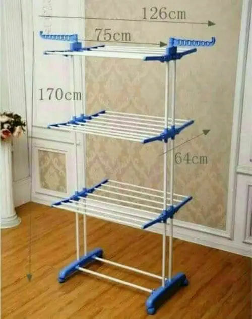 منشر غسيل عمودي 3 طبقات 😍❤️ أعمدة من المعدن المبخوخ حرارياً 😎 متين يتحمل وزن حوالي 40 كيلو 💪 ⭐️ الأبعاد ⭐️ • الطول { 170 } سم • العرض { 75 - 126 } سم • العمق { 64 } سم توصيل ضمن الشام وشحن للمحافظات 🚌