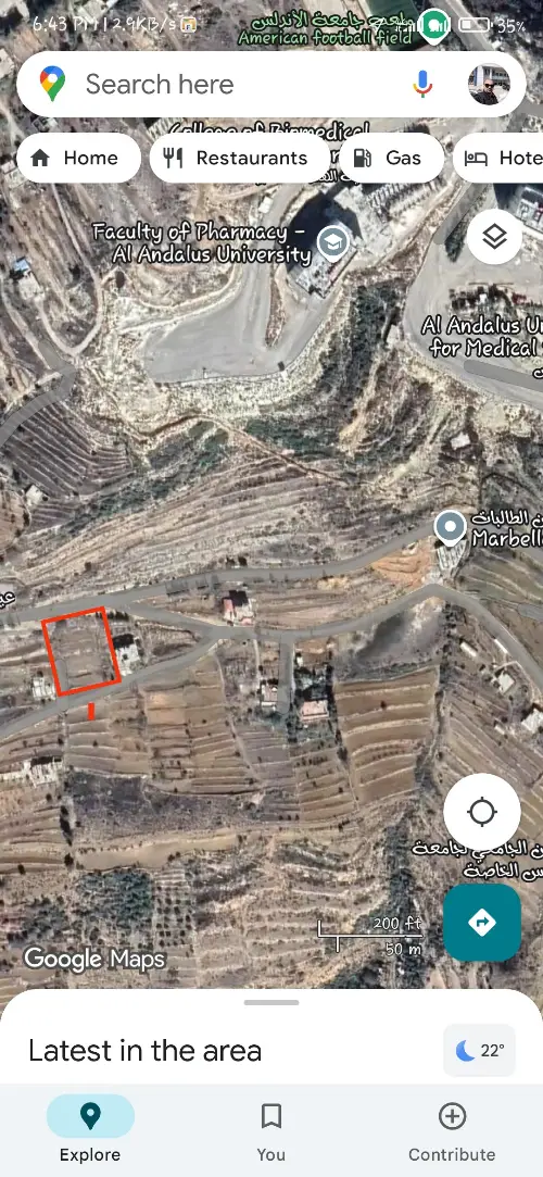 ارض صالحة لبناء مشروع سكني و تجاري قرب جامعة الاندلس الخاصة في مدينة القدموس طريق من الاعلى و طريق من الاسفل