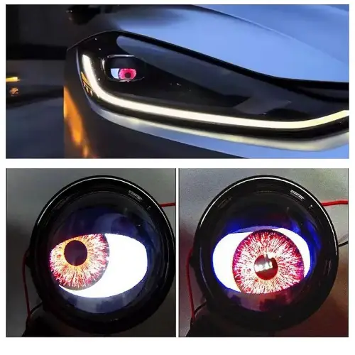مصابيح أمامية بتصميم عدسة العين 👁 تستخدم تقنية SMART LED لإضاءة العدسة بلون معين أو بألوان متعددة 😍🔥 تعمل بجهد يتراوح بين 12 و 36 فولت 💪🏻 تتميز بتصميم يشبه العين المتحركة 👀 تمنح السيارة مظهراً فريدً ومميز ❤️ تأتي بحجم 3 بوصة 💥 مناسبة لجميع أنواع السيارات 😎 توصيل ضمن الشام وشحن للمحافظات 🚌