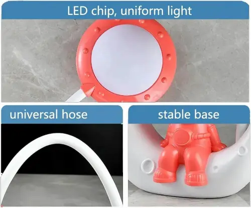 أحلى هدية ممكن تقدميها لطفلك ❤️ لمبدير كيوت للدراسة وغرف النوم 😍 على شكل رجل فضاء وبألوان متعددة 🥰 مزود بساق سيليكون حرة الحركة 👌 لتوجيه الإضاءة حسب الرغبة 💡 يعمل بالشحن عن طريق وصلة Usp 🔌 الألوان { أبيض - أحمر - أزرق } ❤️ الأبعاد { الطول 26 - العرض 13 } سم 🎗 توصيل ضمن الشام وشحن للمحافظات 🚌