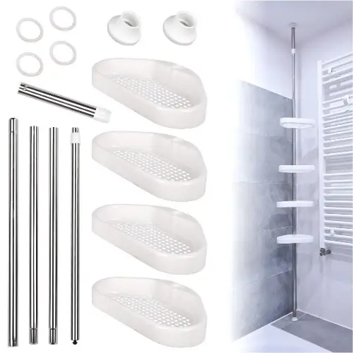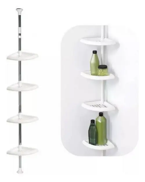 ستاند لزاوية الحمام ولا أجمل 😍❤️4 رفوف متينة تتحمل وزن 15 كيلو ✅أعمدة مصنوعة من الستانلس ستيل 😎يمكن التحكم بالارتفاع حتى 320 سم 🎗سهل الفك والتركيب بدون أي معدات 💯توصيل ضمن الشام وشحن للمحافظات 🚛زاوية حمام