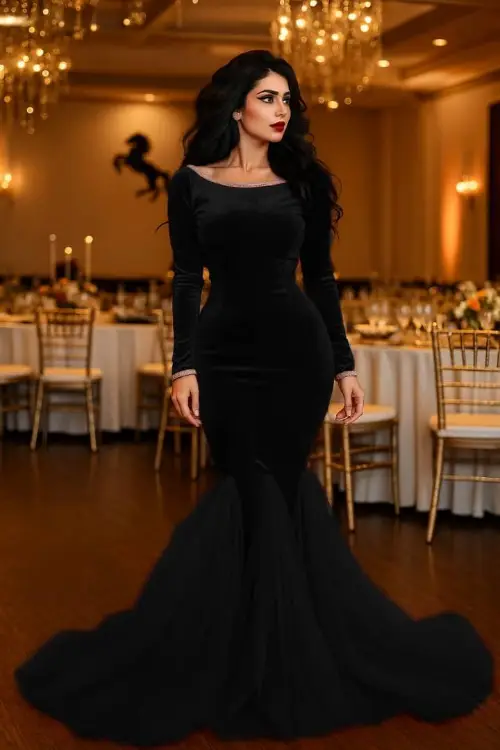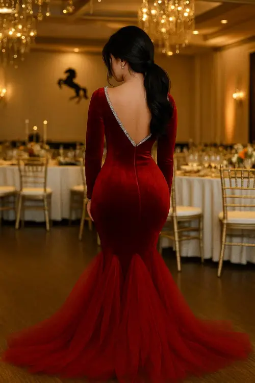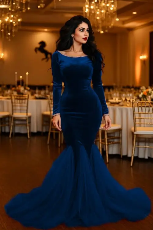 فستان مخمل اجنبي فستان الاميرات الجميلات اصحاب الزوق الرفيع والاناقة بألوانه المميزة والرائعة الاحمر❤️ الكحلي💙 الزيتي 💚 والاسود🖤 المقاس ستندر من 40 ل 48