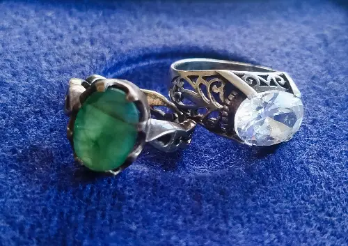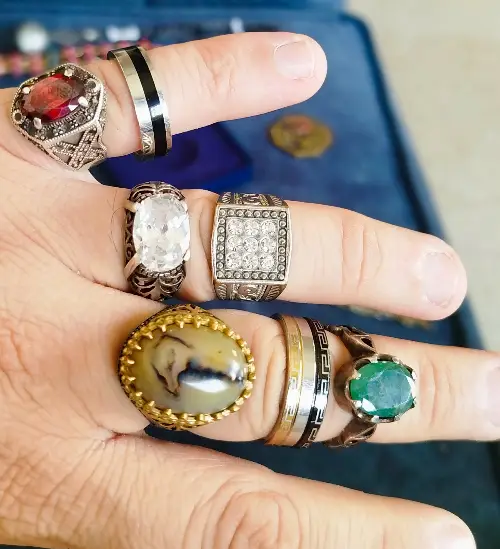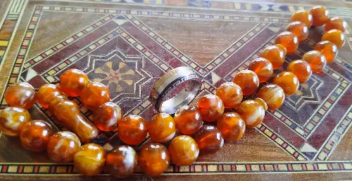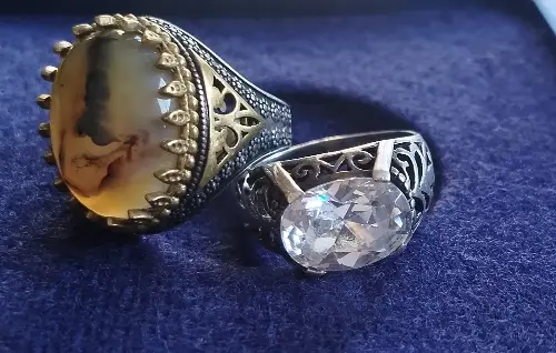 مسابح وخواتم فضة مرصعة بأحجار كريمة
