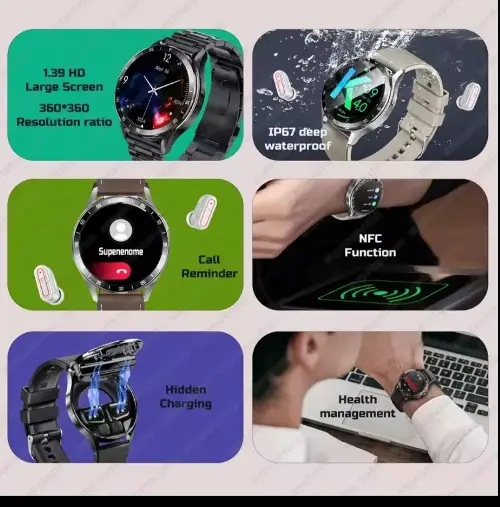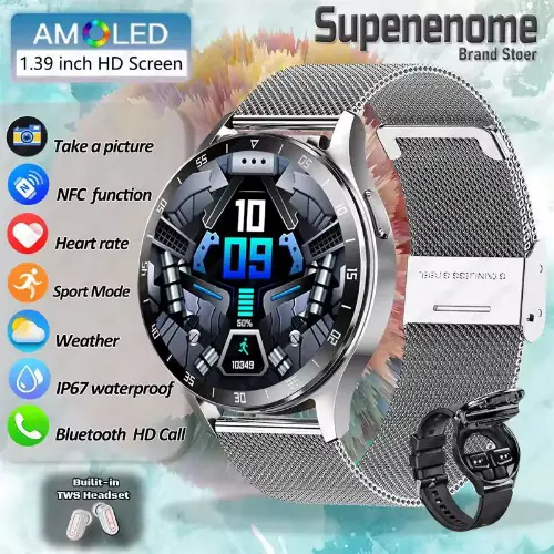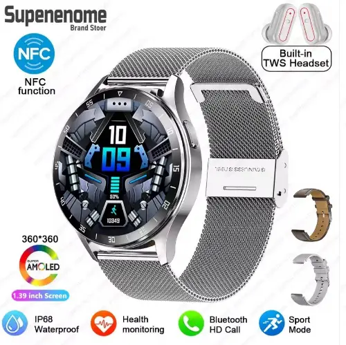 ساعة ذكية فاخرة بتصميم شبك فضي أنيق ⌚ شاشة AMOLED 1.39 بوصة بدقة 360x360 🖥️ مقاومة للماء IP68 مناسبة للسباحة والرياضة 🌊 تتبع صحي شامل: قلب، خطوات، نوم، سعرات 🫀 سماعات بلوتوث يتم تركيبها داخل الساعة 📞 دعم NFC لدفع آمن وسهل 💳 وضع رياضي متعدد مع تحليل أداء 🏃♂️ توصيل ضمن الشام وشحن للمحافظات 🚚ساعة زكية مع سماعات السعر 450000