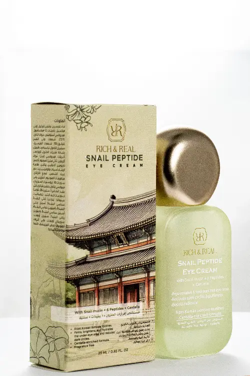 Snail Peptide Eye Cream Snail Peptide Eye Cream 🐌 كريم لمنطقة العين بتركيبة كورية متطورة، صُمم ليعالج الأسباب الحقيقية لمشاكل محيط العين. 🧪 المكونات الأساسية ودورها في التركيبة 🐌 Snail Secretion Filtrate (Snail Mucin) يرطّب بعمق، يعزّز تجديد الخلايا، يحسّن ملمس البشرة، ويزيد قدرتها على التحمّل 💫 6 Peptides تحفّز إنتاج الكولاجين، تنعّم الخطوط الدقيقة، تشدّ البشرة المترهلة، وتحسّن المرونة ✨ Niacinamide يوحّد لون البشرة، يقلّل التصبغات والهالات السوداء، ويمنح إشراقة متجانسة 🛡️ Vitamin E مضاد أكسدة قوي، يحمي من الجذور الحرة، ويعزّز مرونة البشرة 🌿 Centella Asiatica تهدّئ الاحمرار والالتهابات، تدعم التئام الأنسجة، وتعزّز مقاومة البشرة 💧 Panthenol يرطّب، يقلّل الانتفاخ، ويخفّف الالتهابات 🌸 Allantoin يهدّئ التهيّج، ويزيد من نعومة البشرة 🍃 Hydroxyacetophenone مضاد أكسدة داعم، يقلّل التهيّج ويخفّف التعب 💦 Hyaluronic Acid ترطيب عميق وطويل الأمد، يملأ الخطوط الدقيقة ويمنح امتلاء صحي 🧩 Ceramides + Lecithin + Cholesterol تقوّي حاجز البشرة، وتحافظ على رطوبتها 💡 طريقة الاستخدام تؤخذ كمية صغيرة بحجم حبة الأرز، توزّع بلطف حول العينين وتُربّت حتى الامتصاص للاستخدام صباحاً قبل المكياج ومساءً قبل النوم ✅ Facts خالٍ من: الكحول، مسببات الحساسية وفق معايير الاتحاد الأوروبي, البارابين، السيليكون، الكبريتات، والعطور. مواصفات إضافية: نباتي 🌱، غير مجرّب على الحيوانات 🐰، آمن للبشرة الحساسة. قوام خفيف، سريع الامتصاص، مثالي تحت المكياج ⏳ النتائج بعد الاستخدام ✨ من أول استخدام: ترطيب وراحة فورية ✨ بعد أسابيع: انتفاخ أقل وملمس أنعم ✨ بعد شهرين: هالات أفتح وتجاعيد أقل، ومحيط عين مشرق ومشدود 🌿 Rich & Real – علوم كورية بجودة صيدلانية عربية. جربوه… وشوفوا الفرق بنفسكم