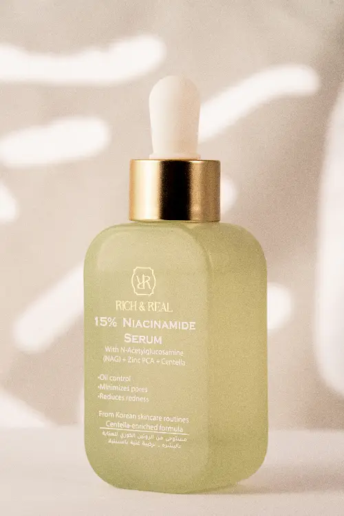 15% Niacinamide Serum ✨ الخطوة اللي تحارب حبّ الشباب وتنظّم إفراز الزيوت ✨ 15% Niacinamide Serum يقلّل مظهر المسام، يهدّئ الاحمرار، ويخفّف تهيّج البشرة وآثار الندبات ليترك البشرة صافية ومتوازنة 🌿 💡 كيف تستخدموه صح: ✅ يُستخدم بالتدرّج في حال كان الاستعمال لأول مرة (2-3 مرات بالأسبوع) وكل اسبوع يزداد الاستخدام يوم اضافي حتى يصبح يومي ✅ يُطبق يومياً في حال كانت البشرة معتادة عليه. ✅ يمكن أن يُطبق صباحاً أو مساءً، مع ضرورة وضع واقٍ شمسي عند الاستخدام صباحًا. ✅ يُطبق على بشرة جافة ويُتبع بكريم مرطب 🚫 تجنّبوا: ❌ لا يُمزج مع الريتنال أو الفيتامين سي في نفس الروتين. ❌ لا يُوقف مباشرة عند ظهور Purging (حبوب صغيرة حمراء)، إذ يُعد مؤشرا. على فعالية السيروم أن البشرة بمرهلة التطهير. #RichAndReal 🥇