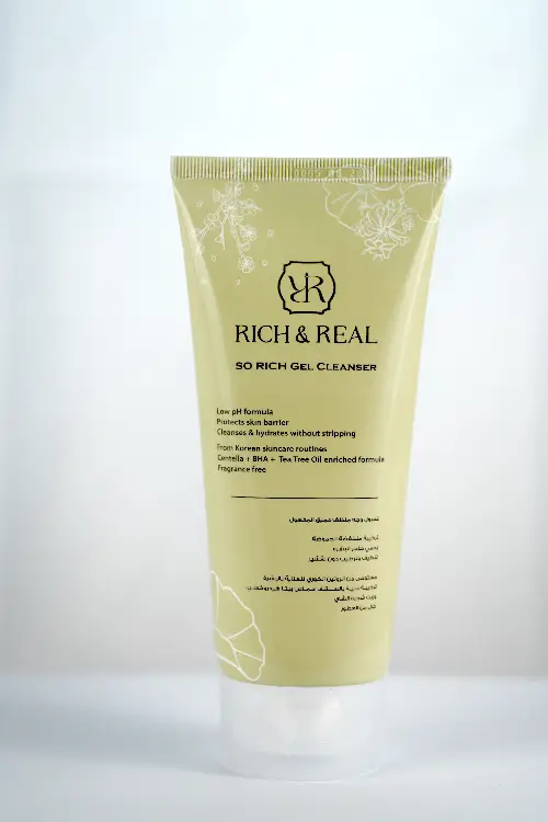 So Rich Gel Cleanser from Rich & Real لأن صحة بشرتك تبدأ من الخطوة الأولى ✨ ابتكرنا باستخدام تركيبة كورية متقدمة So Rich Gel Cleanser from Rich & Real مصمم ليكون أكثر من مجرد غسول، هو قاعدة علمية متينة لأي روتين عناية ناجح صيغة منخفضة الـpH مدعّمة بمزيج فريد من الأحماض والمكونات المهدئة تنظف بذكاء وتحافظ على توازن البشرة دون أي جفاف أو تهيج 🧪 المكوّنات الأساسية ودورها في التركيبة: 💧 Betaine Salicylate BHA شكل أحدث وألطف من الساليسيليك ينظف المسام بعمق بنفس المعفول لكن مع ترطيب ودون تهيج للبشرة ✨ Citric Acid AHA تقشير لطيف يزيل الخلايا الميتة ويمنح إشراقة صحية 🌿 Tea Tree Oil مضاد للبكتيريا والالتهاب يخفف الحبوب ويوازن إفراز الدهون 🍃 Centella Asiatica تهدئة وتجديد ودعم الحاجز الطبيعي 🌸 Allantoin ترطيب وتهدئة لزيادة تحمّل البشرة 🧬 Saccharomyces Ferment تغذية ومرونة وإشراقة متجددة ✨ الفوائد ينظف البشرة بعمق دون أن يفقدها رطوبتها يفتح المسام ويقشر بلطف لإشراقة متجددة يتحكم بإفراز الدهون ويقلل من ظهور الحبوب يهدئ الاحمرار ويخفف التهيج يعيد توازن درجة حموضة البشرة 5.0 – 5.5 يرطب البشرة ويمنحها إشراقة صحية 🚫 خالٍ من: الكبريتات القاسية، الكحول، العطور، البارابين، السيليكون، الألوان الصناعية، ومسببات الحساسية وفق معايير الاتحاد الأوروبية، غير مجرب على الحيوانات #RichAndReal