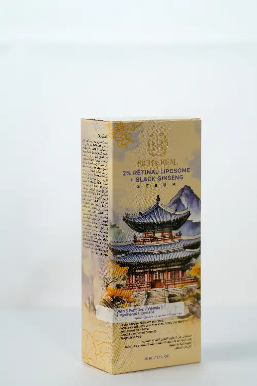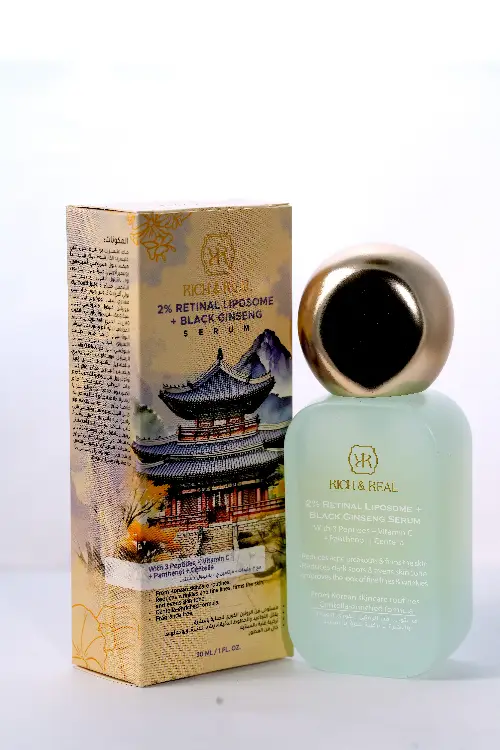 Retinal Liposome + Black Ginseng Serum 0.3 الجيل الجديد من العناية الليلية الفعالة والمُريحة للبشرة 🌙 تركيبة علمية متطوّرة تجمع بين 2% ريتينال ليبوسومي ومستخلص الجنسنغ الأسود، لتمنحك نتائج ملموسة في تقليل التجاعيد، محاربة حب الشباب والندبات، توحيد لون البشرة، تحسين الملمس — مع الحفاظ على أعلى درجات التحمل حتى للبشرة الحساسة. 🔬 2% Liposomal Retinal Complex مشتق متطور من فيتامين A يعمل على تسريع تجدد الخلايا، تقليل الخطوط الدقيقة، وتحفيز الكولاجين بفعالية أعلى وتهيج أقل. 🌿 Black Ginseng Extract مضاد أكسدة فائق القوة، يُحسّن مرونة البشرة، يدعم الكولاجين، ويُهدئ الالتهابات والاحمرار. 💧 Hyaluronic Acid + Panthenol + Allantoin ترطيب عميق وتهدئة فورية، تمنح البشرة نعومة وراحة خلال فترة التجديد. 🧬 Multi-Peptides تُحفّز تجديد الخلايا، تُعزز التماسك، وتساعد على إصلاح البشرة بفعالية ملحوظة. 🌸 Niacinamide + Centella Asiatica Extract تُوحّد لون البشرة، تقلل من التصبغات والاحمرار، وتُقوّي الحاجز الواقي. 🌰 Macadamia Ternifolia Seed Oil زيت مغذٍ غني بالأحماض الدهنية يعزز الترطيب، النعومة، ويحمي من الجفاف. 🧴 طريقة الاستخدام: - يُستخدم ليلاً فقط، على بشرة نظيفة وجافة. - توزع كمية صغيرة (بحجم حبة البازلاء) على الوجه بالكامل مع تجنّب منطقة العين والشفاه. يُتبع بكريم مرطب. - ابدأ/ئي باستخدامه 2–3 مرات أسبوعيًا، ثم زِد/ي التكرار تدريجيًا. - يجب استخدام واقٍ شمسي صباحاً بدرجة SPF 30 أو أكثر. 🚫 خالٍ من: الكحول، العطور، الزيوت المعدنية، السيليكون، الكبريتات، البارابين، والألوان الصناعية. نباتي – غير مجرب على الحيوانات – آمن للبشرة الحساسة. #RichAndReal 🥇