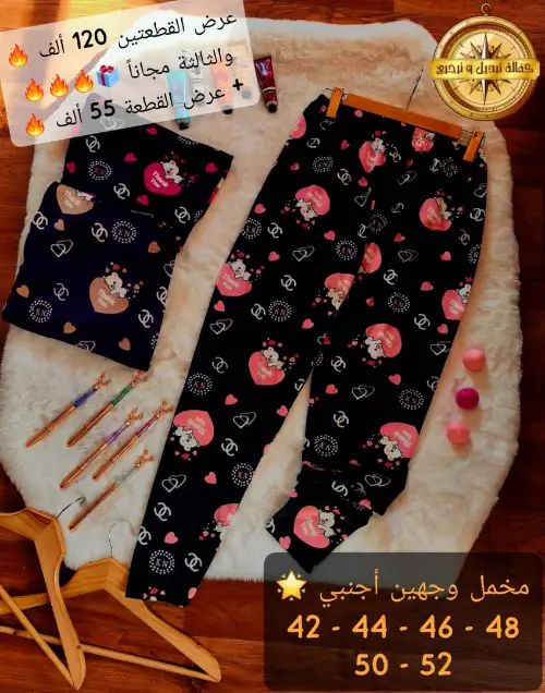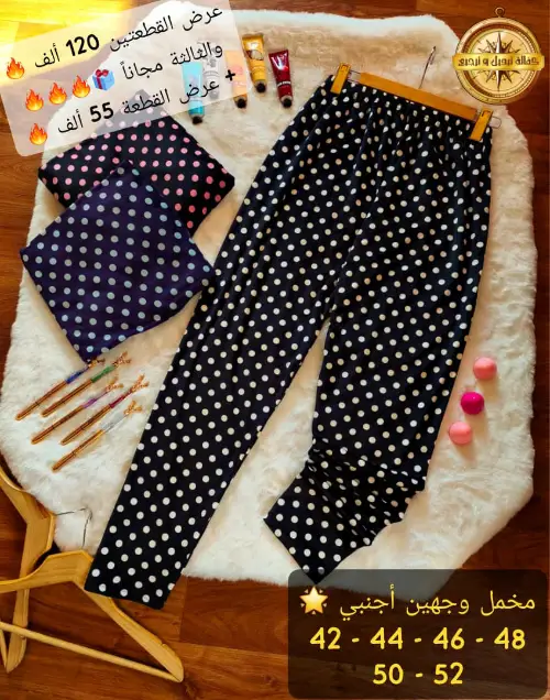 السعر 55 ألف للقطعة الواحدة 🔥 السعر ا120 ألف لل3 قطع 🔥 *عالزبون/ة اختيار القطعتين والثالثة تحديدها علينا وهي من ضمن الموديل ذاته🎁* بنطال منزلي تقيل جداً للصبايا والسيدات ولا ألذ 😍 *القماش:* مخمل وجهين سميك وناعم قماش أجنبي *مستورد* ممتاز بكفالة🧭✔️ *ألوان عدد:* بالصور والصور واقع ✔️ *قياسات:* ستاندر 42 - 44 - 46 - 48 - 50 - 52 🌺 *السعر :* 55 ألف للقطعة الواحدة 🔥 *السعر :* 120 ألف لل3 قطع 🔥 🔥 توصيل (دمشق _ ريف دمشق) شحن باقي المحافظات توصيل وشحن فوري 🌪️