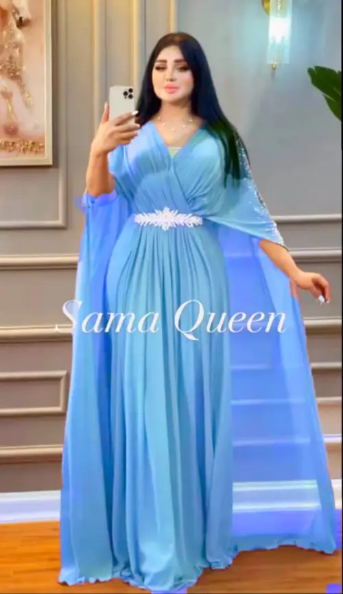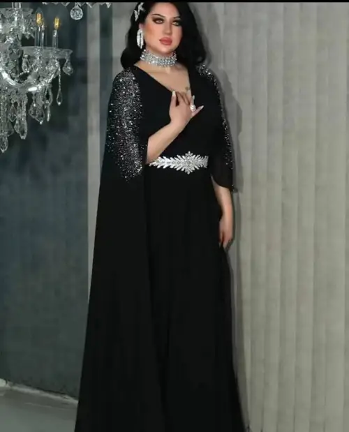 فستان شيفون دبل كلوش اجنبي لزق ستراس حراري مع حجر بلور زهر / نيلي/ احمر ريشي ٤٢/ ٤٤/ ٤٦/ ٤٨/ 👆👆 اسود / ٤٢ / ٤٤/ ٤٦/