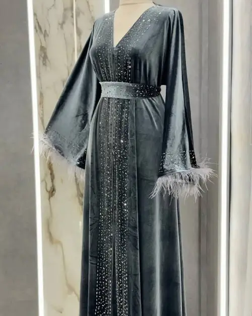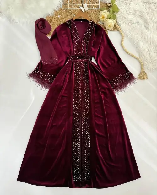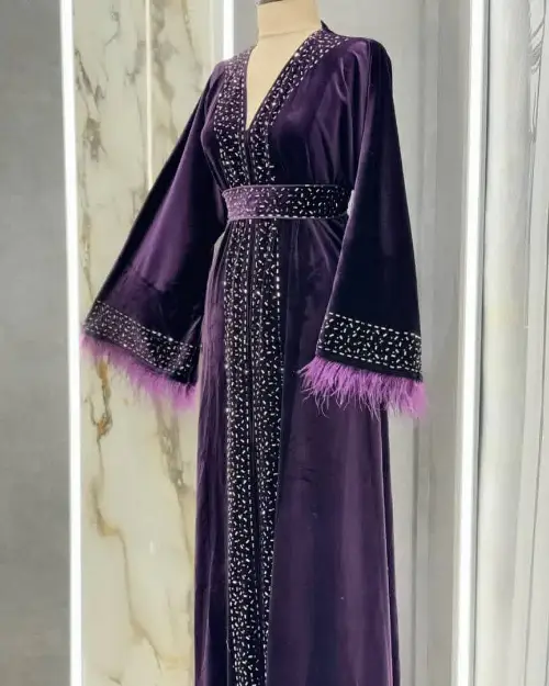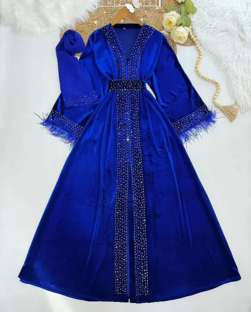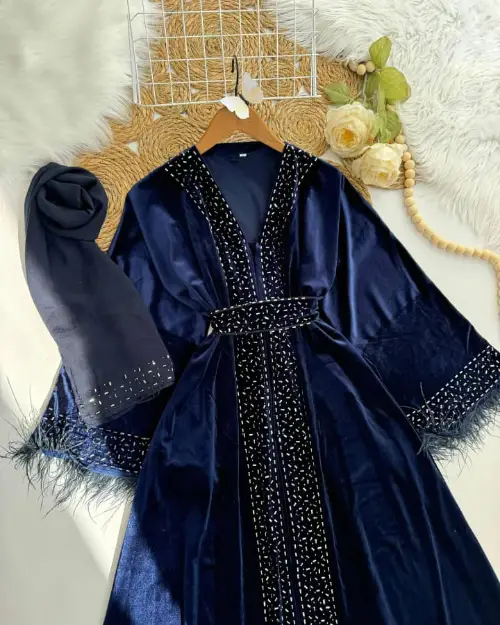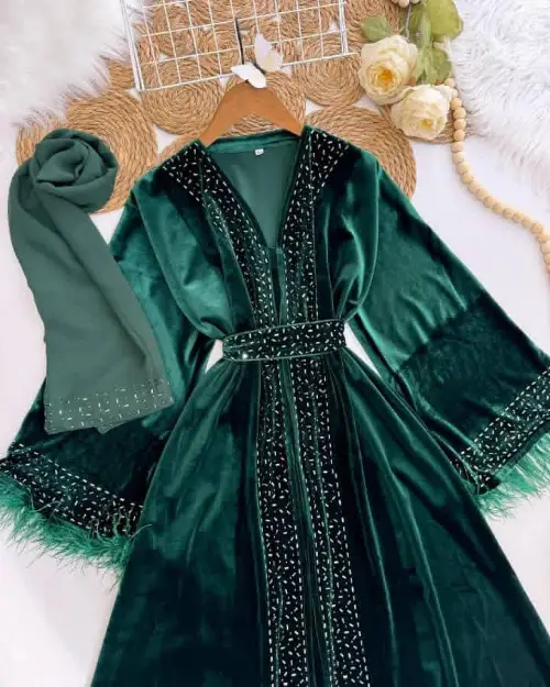 عباية مخمل اجنبي على شكل قفطان🤗سحاب على طول العبايةستراس لزق حراري مكفول