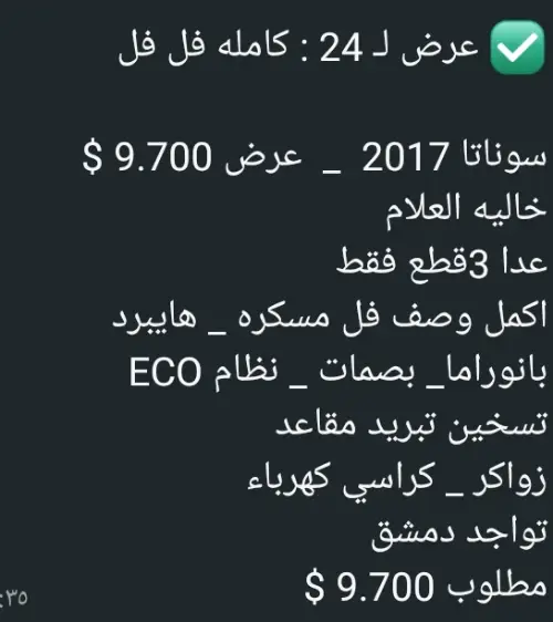 سوناتا ...2017....خالية برا جوا ....جاهزية فنية وميكانيكية عالية ....محرك ودوزان ذهب ....جاهزية عالية .......عمر ...27/10.........البيع للراغب فقط ...نعتذر من الوسطاء والمكاتب ...عمولة من الشاري ........شكراا للجمييع .......
