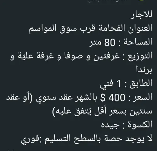 لحق حالك واغتنم الفرصة ......أجمل مناطق دمشق ....جاهزية عالية ......بالسعر التمييز ........أ.أ.ع..27/10......للراغب فقط ....نعتذر من الوسطاء والمكاتب .......شكراااا للجمييع ...